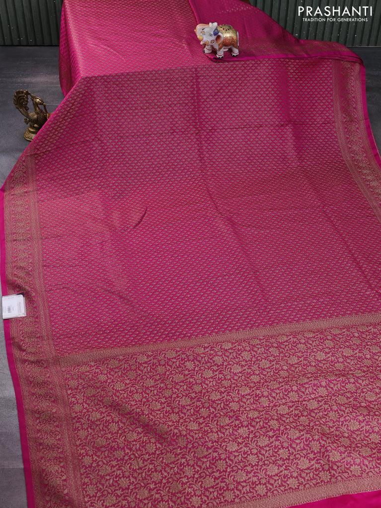 Banarasi semi silk saree pink with allover thread & zari weaves and woven border