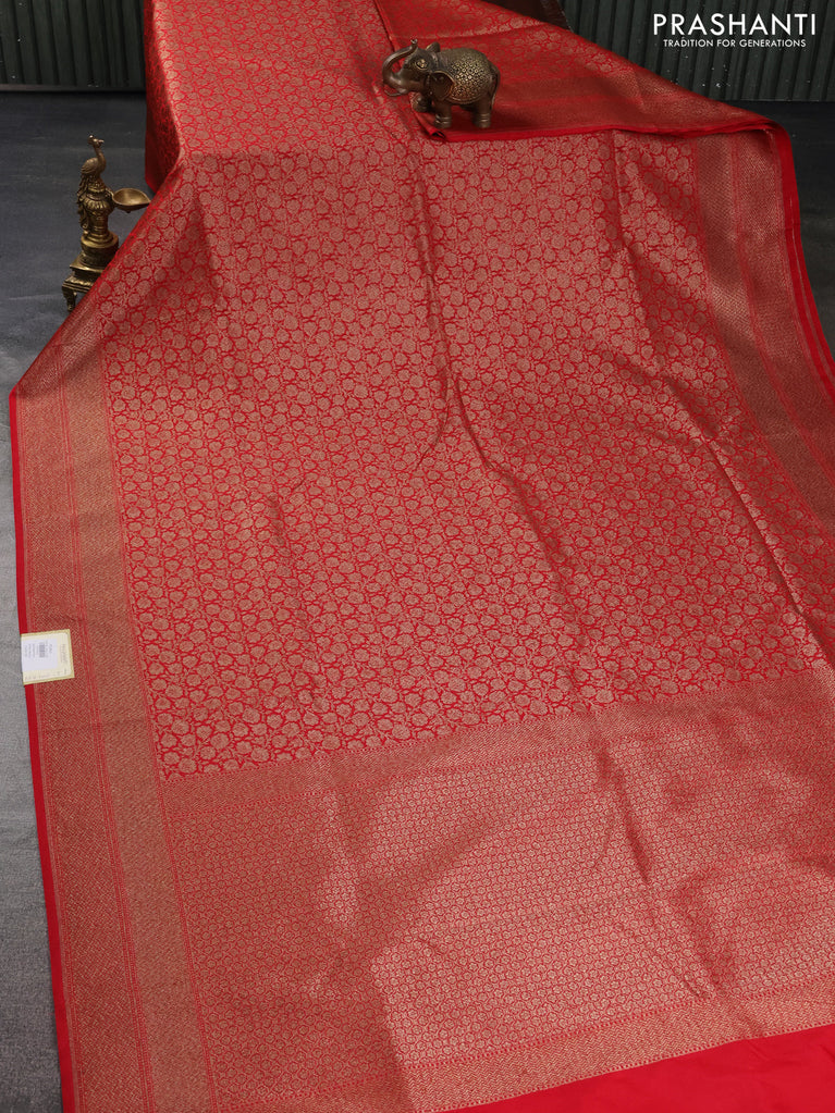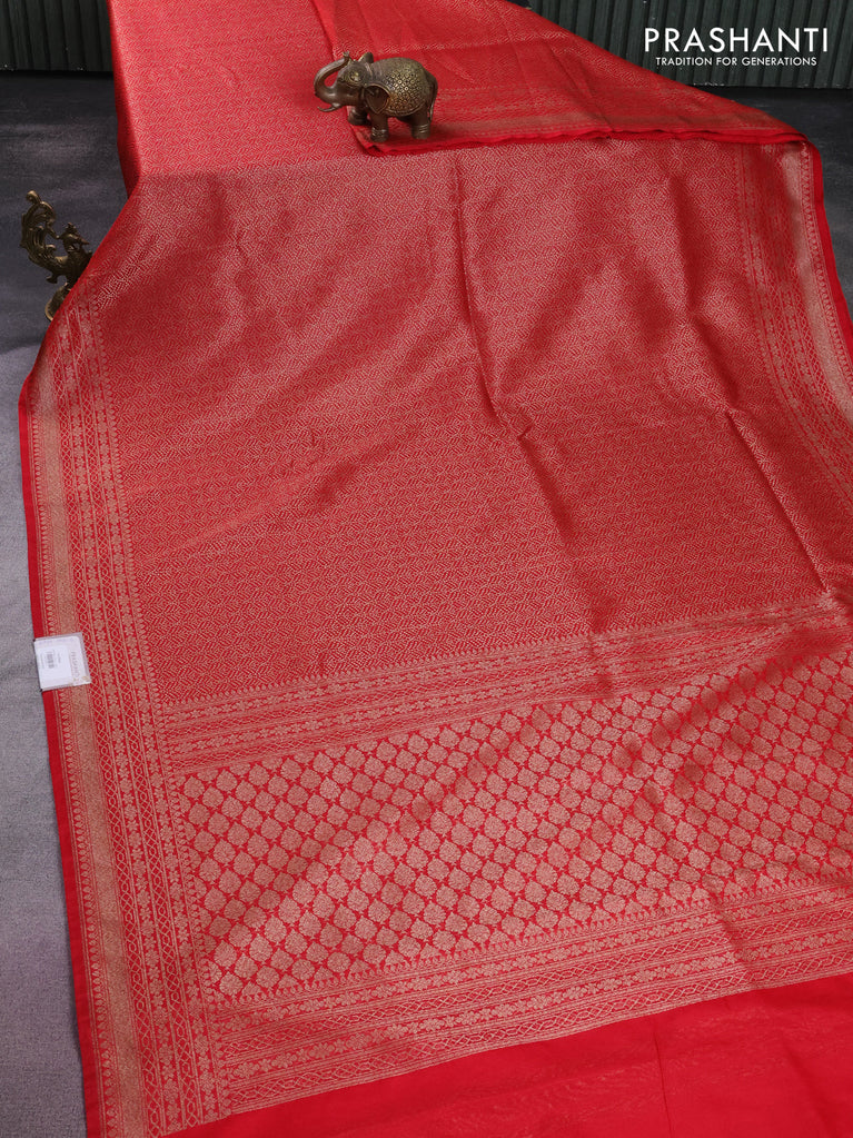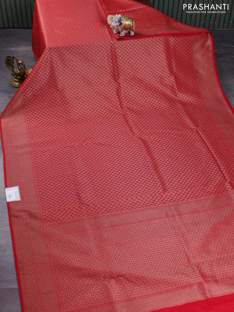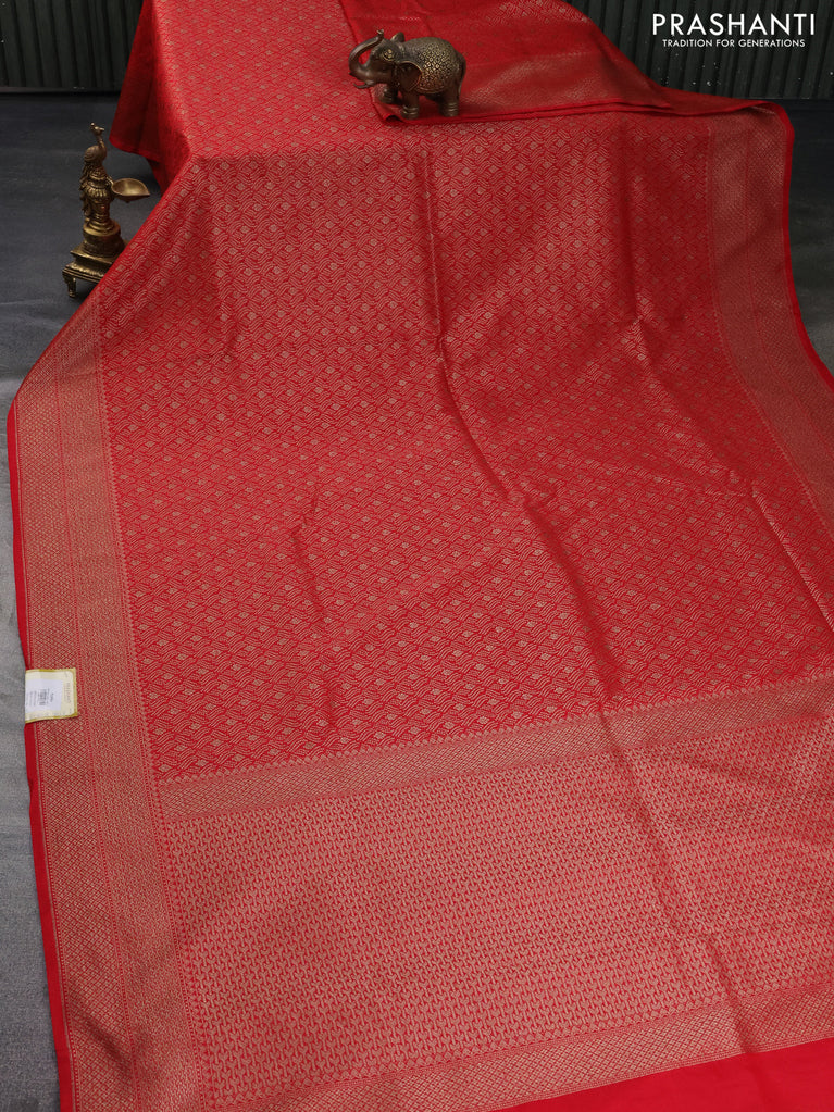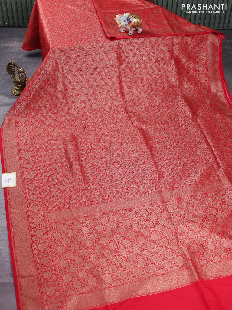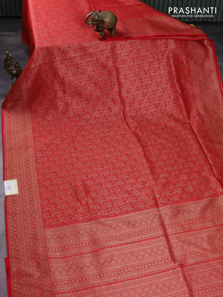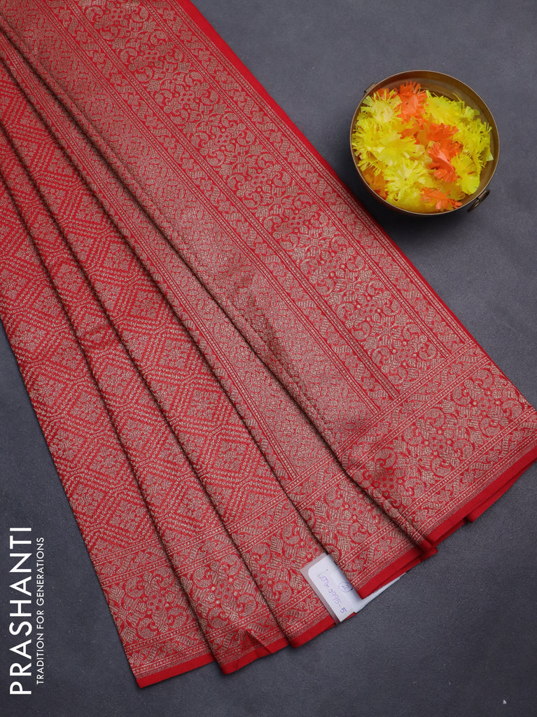 Banarasi semi silk saree red with allover thread & zari weaves and woven border
