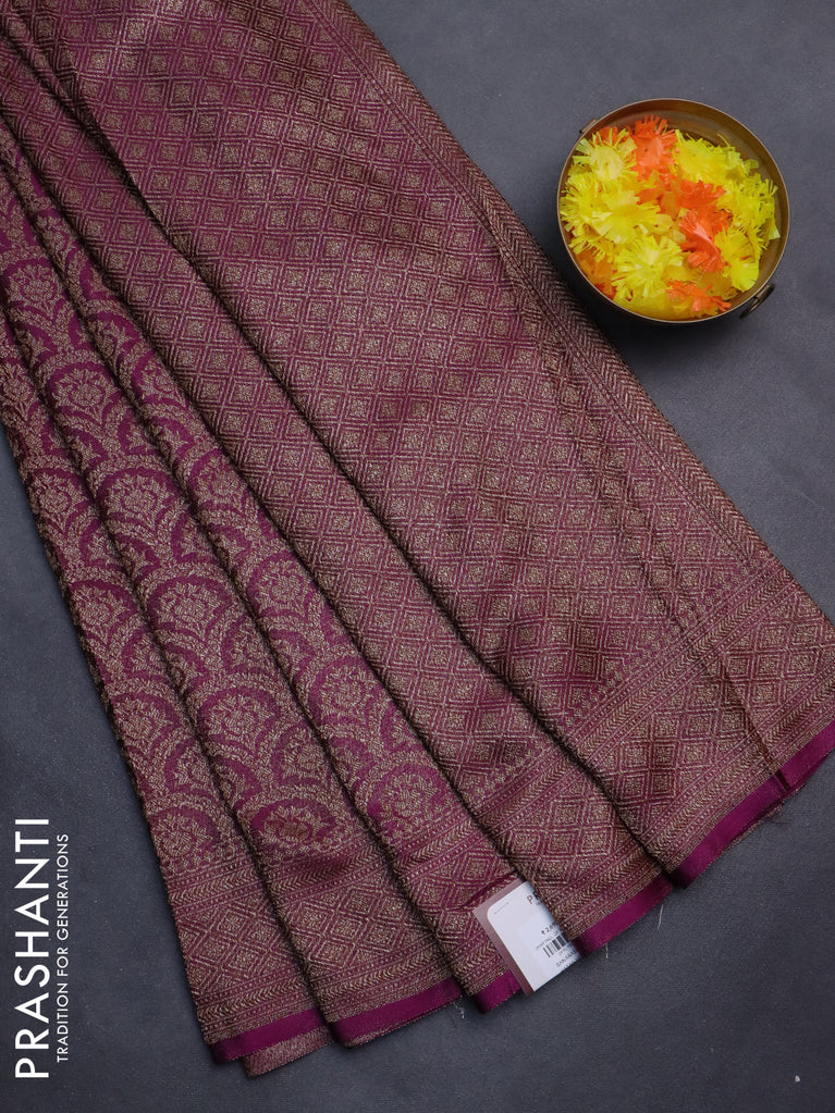 Banarasi semi silk saree purple with allover thread & zari weaves and woven border