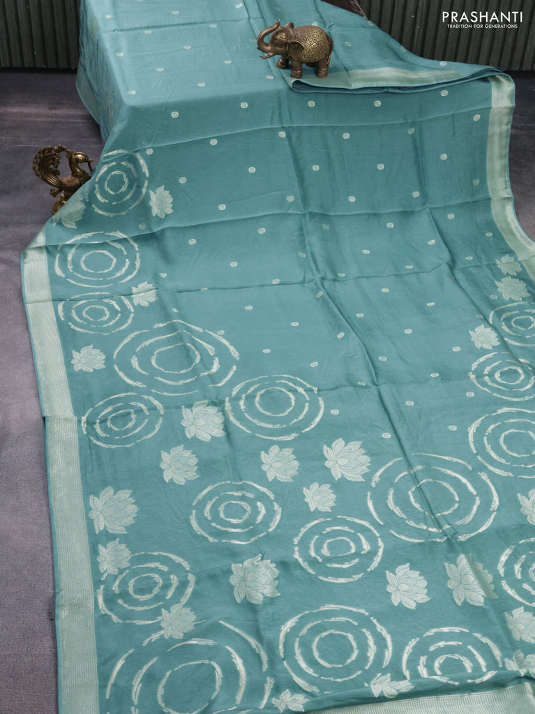 Banarasi silk saree pastel blue with allover floral prints and scallop design border