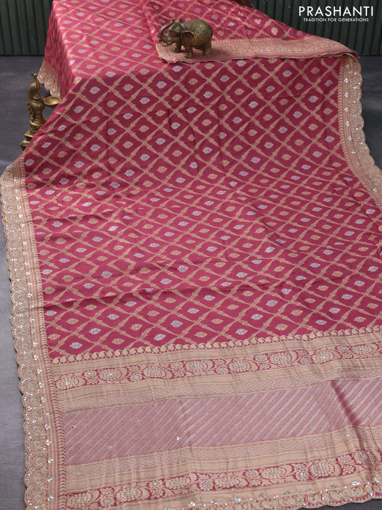 Banarasi silk saree pink and green with zari woven elephant buttas and zari woven border