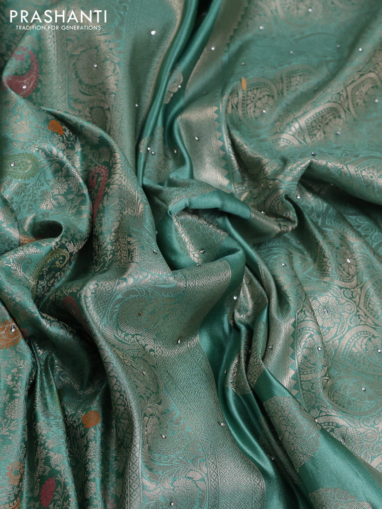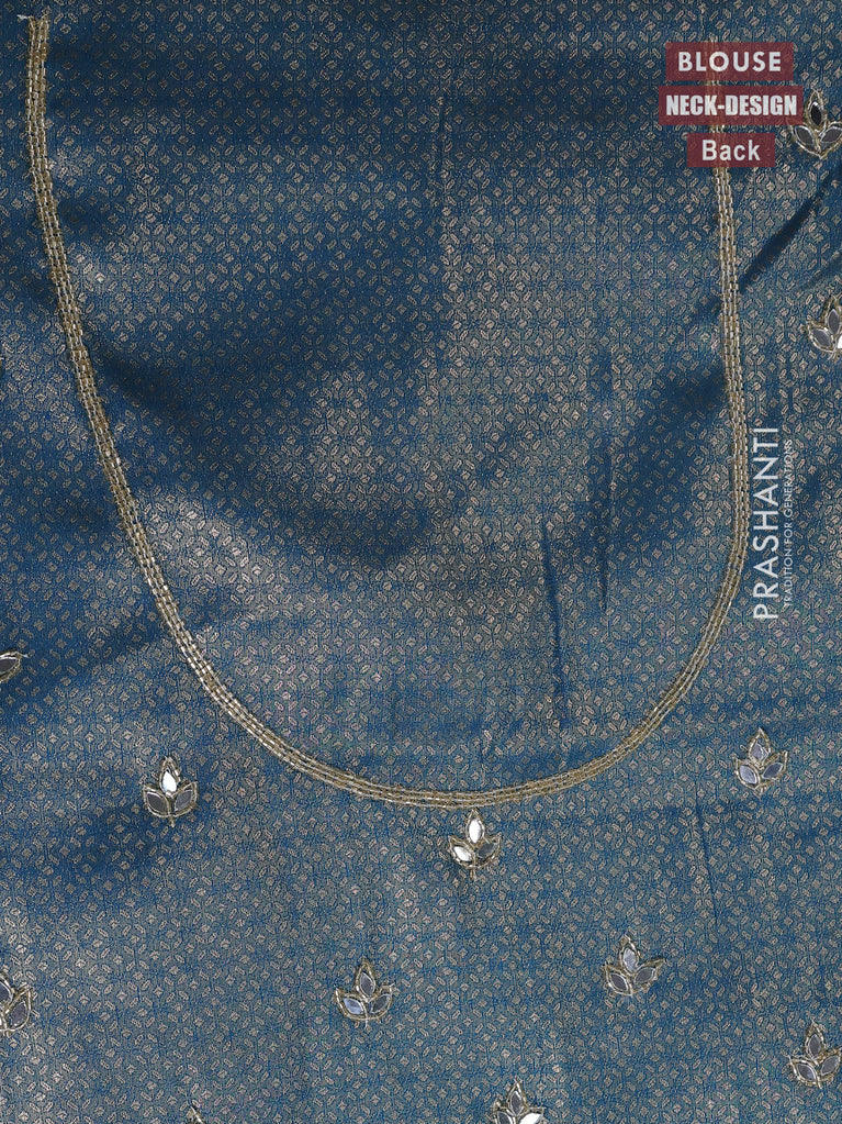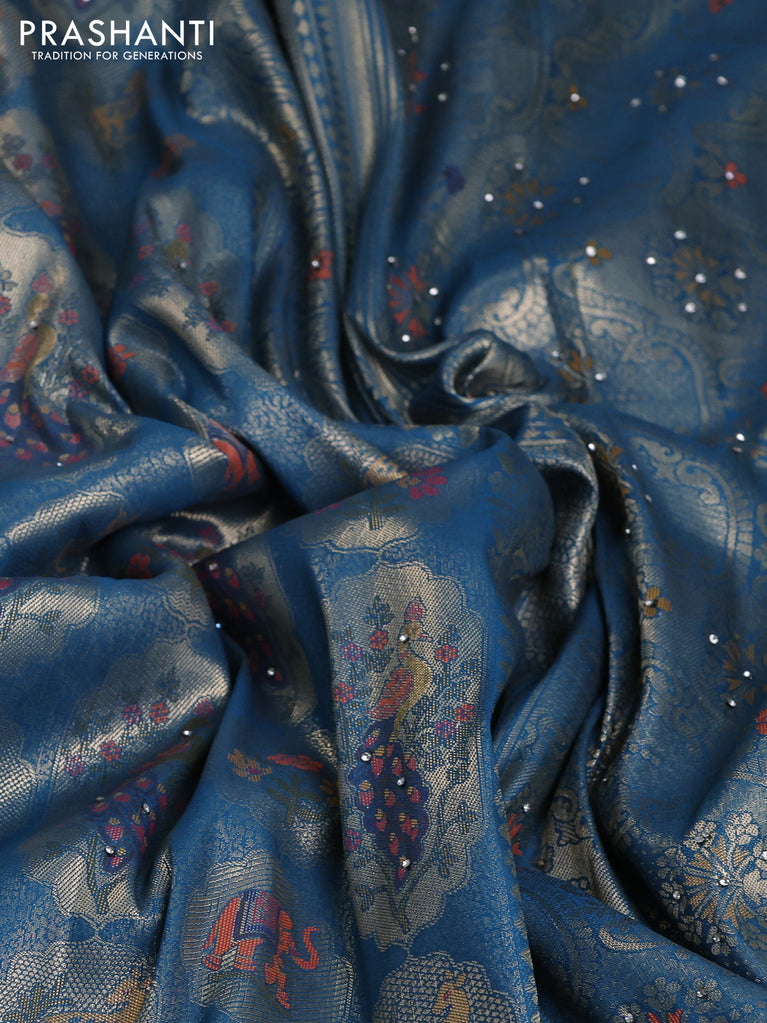Banarasi silk saree peacock blue with allover zari woven brocade weaves and zaridosi gotapatti work border