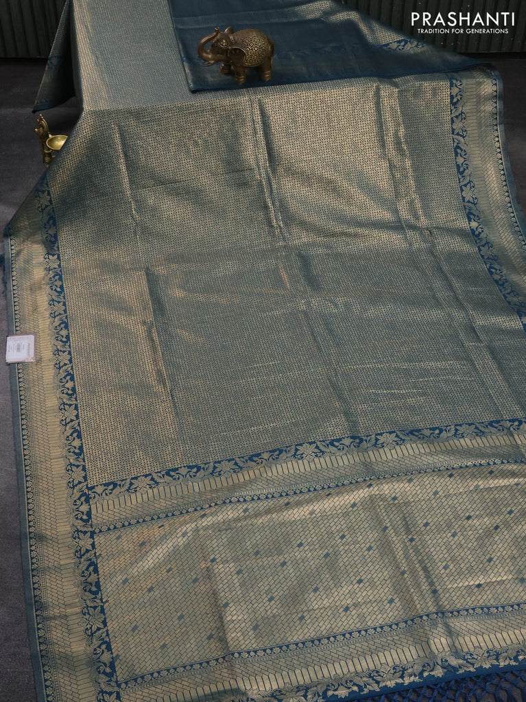 Banarasi silk saree peacock blue with allover zari woven brocade weaves and zari woven border