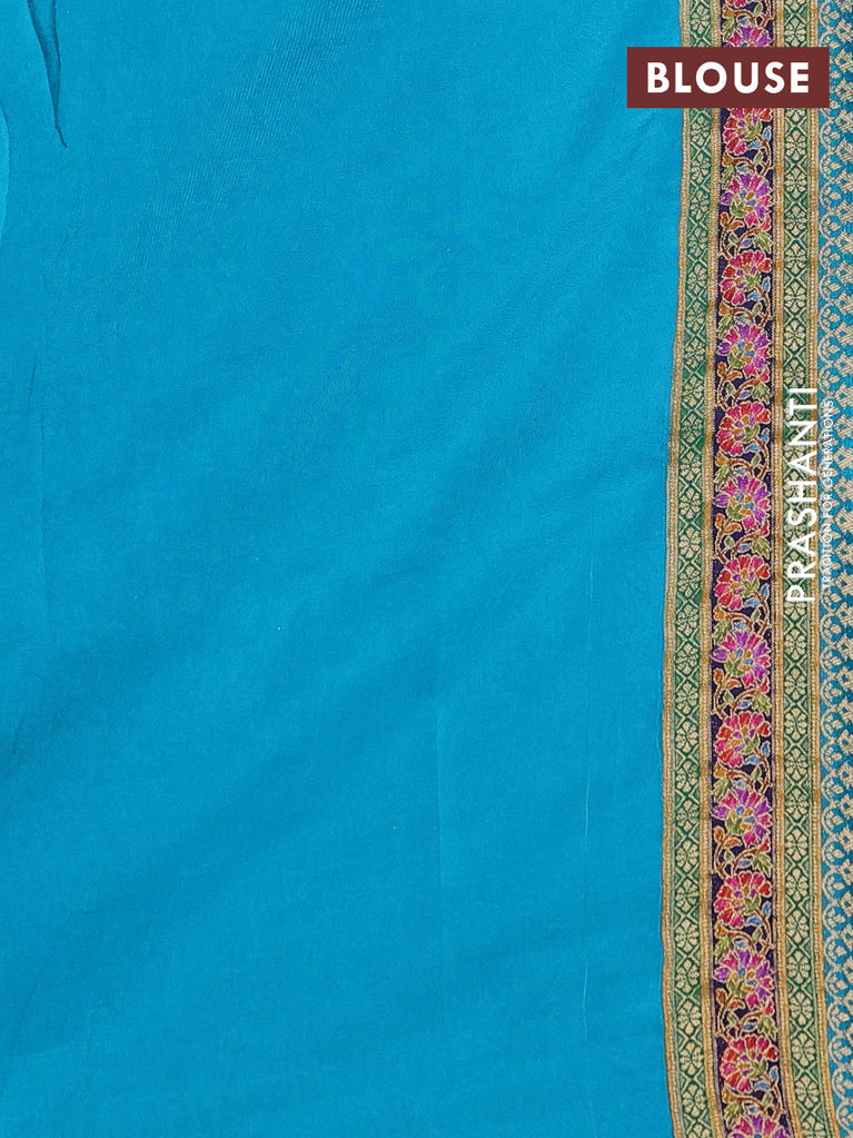 Banarasi silk saree teal blue shade with allover zari woven brocade weaves and zaridosi gotapatti work border