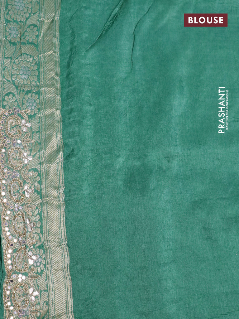 Banarasi silk saree teal green shade with allover zari woven brocade weaves and zaridosi gotapatti work border
