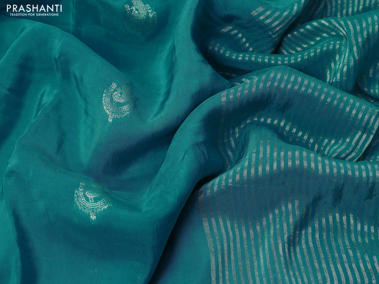 Banarasi silk saree teal blue with position butta prints and position prints