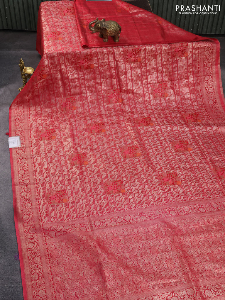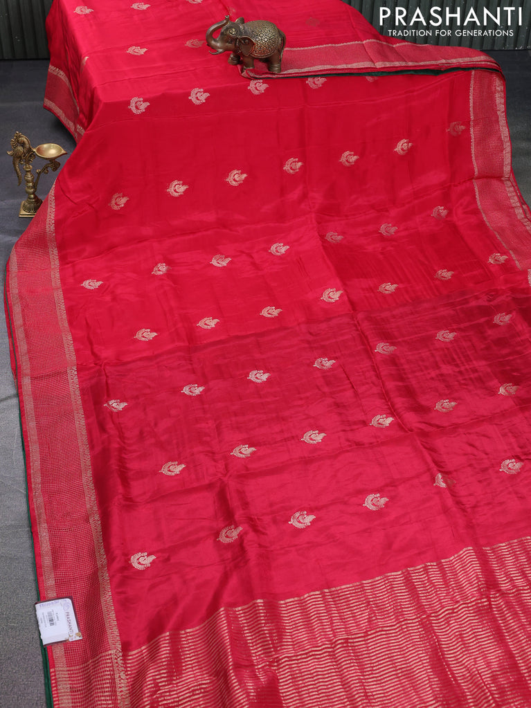 Banarasi silk saree reddish pink and green with annam zari woven buttas and zari woven border