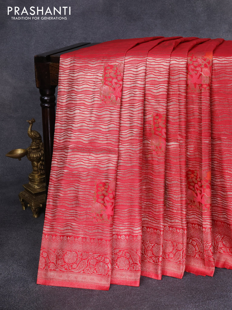 Banarasi silk saree red with allover zari woven brocade weaves and zari woven border