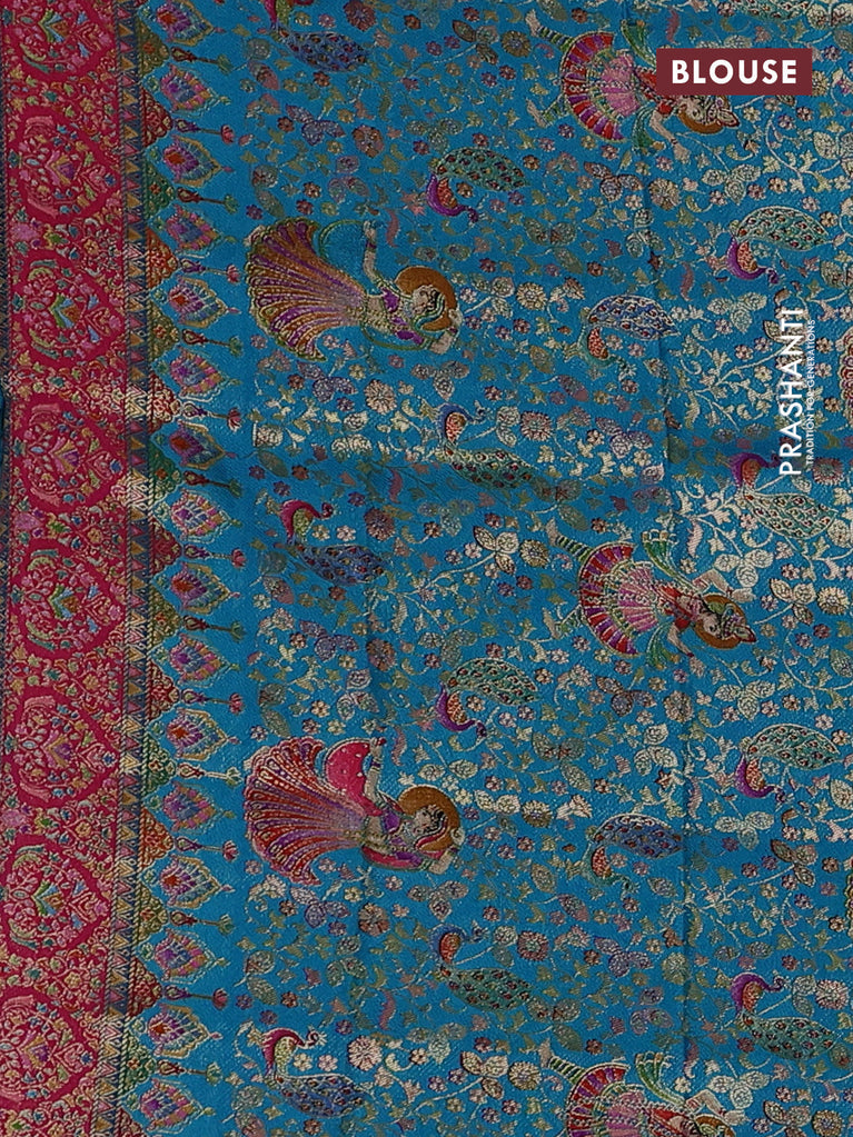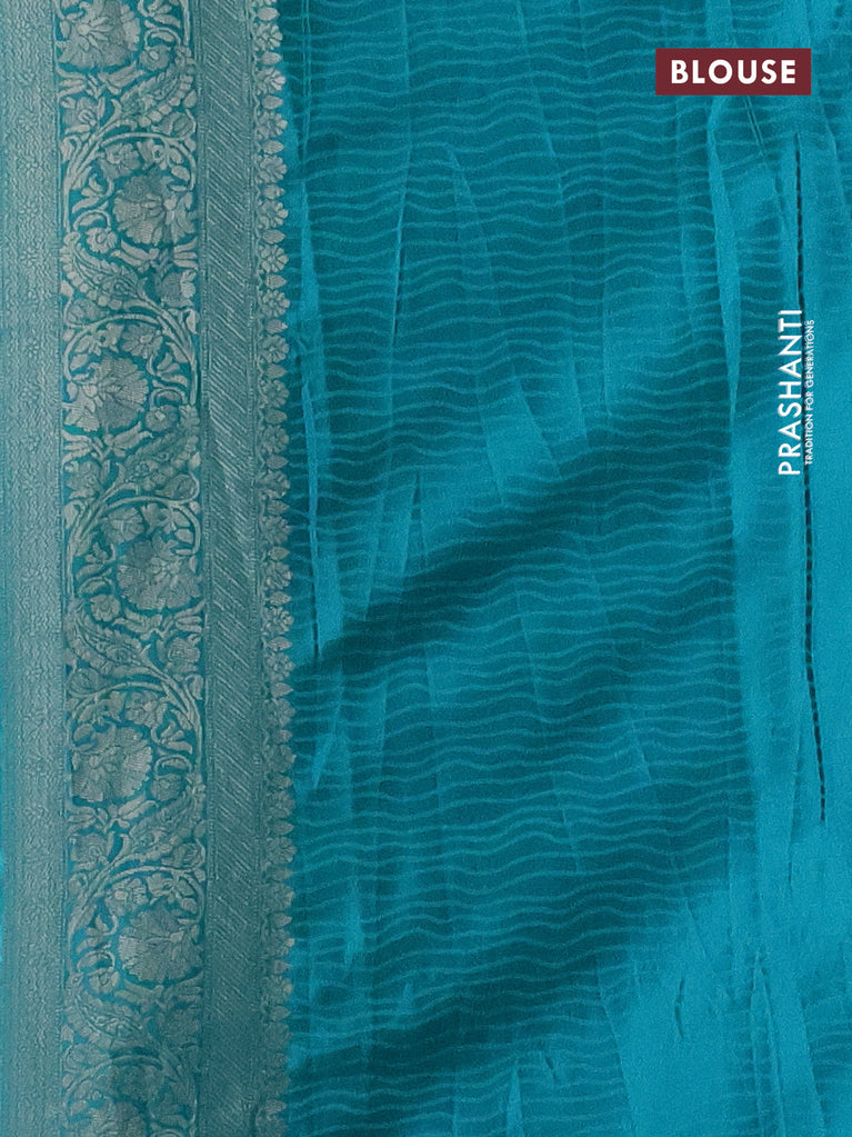 Banarasi silk saree teal blue with allover zari woven brocade weaves and zari woven border
