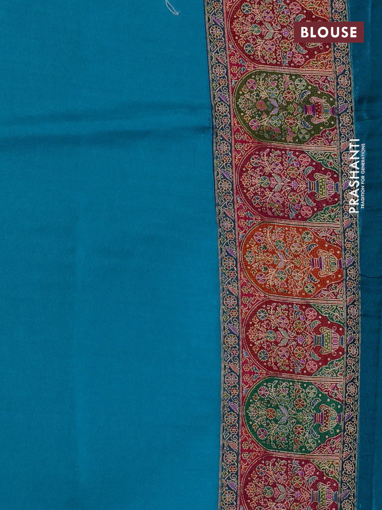 Banarasi silk saree teal blue with plain body and position prints