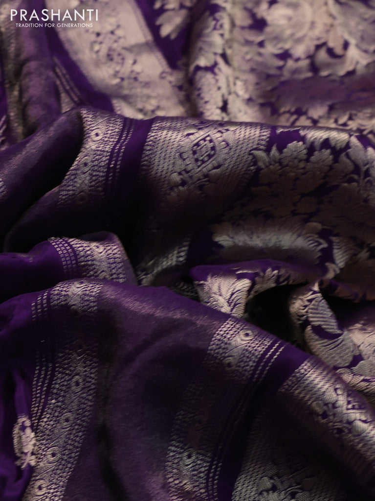Banarasi silk saree violet with allover zari woven brocade weaves and zari woven border
