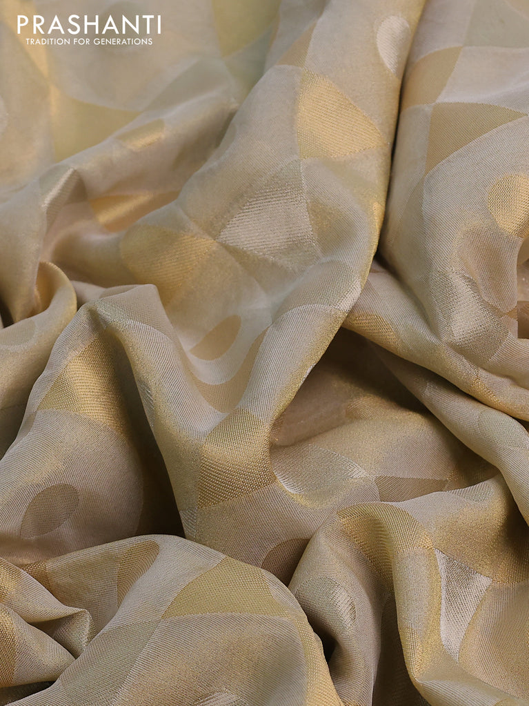 Banarasi tissue saree beige and dark green with allover zari woven geometric wevaes and lace work border