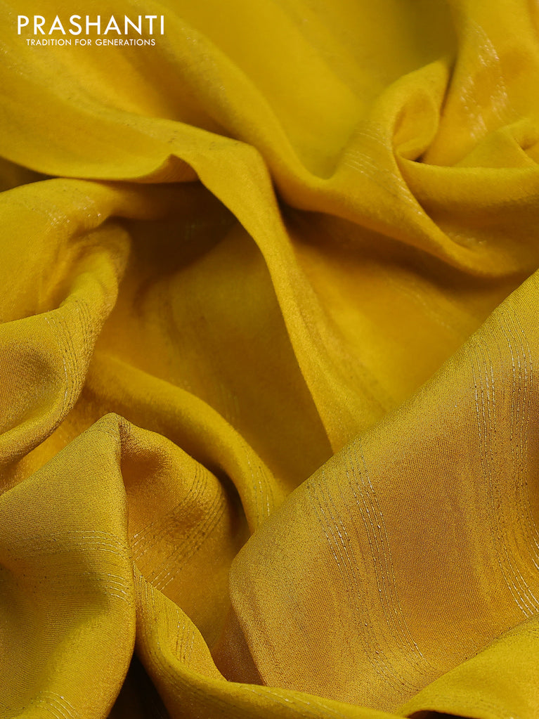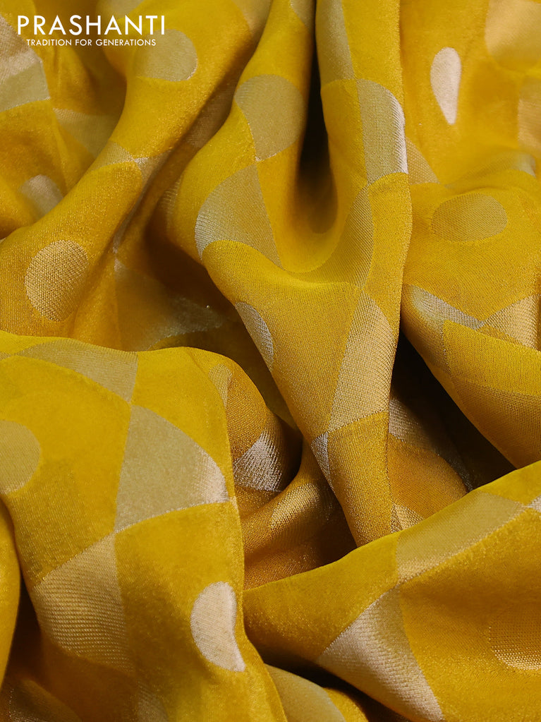 Banarasi tissue organza saree mustard yellow with plain body and kalamkari printed border