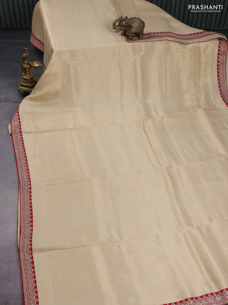 Banarasi tissue saree beige and red with allover zari woven geometric wevaes and lace work border