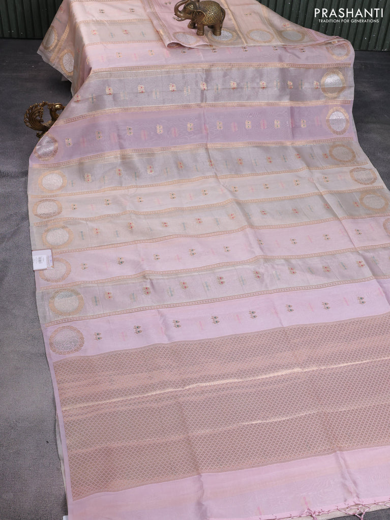 Banarasi tissue semi silk saree baby pink and peach shade with allover zari weaves and zari woven floral border