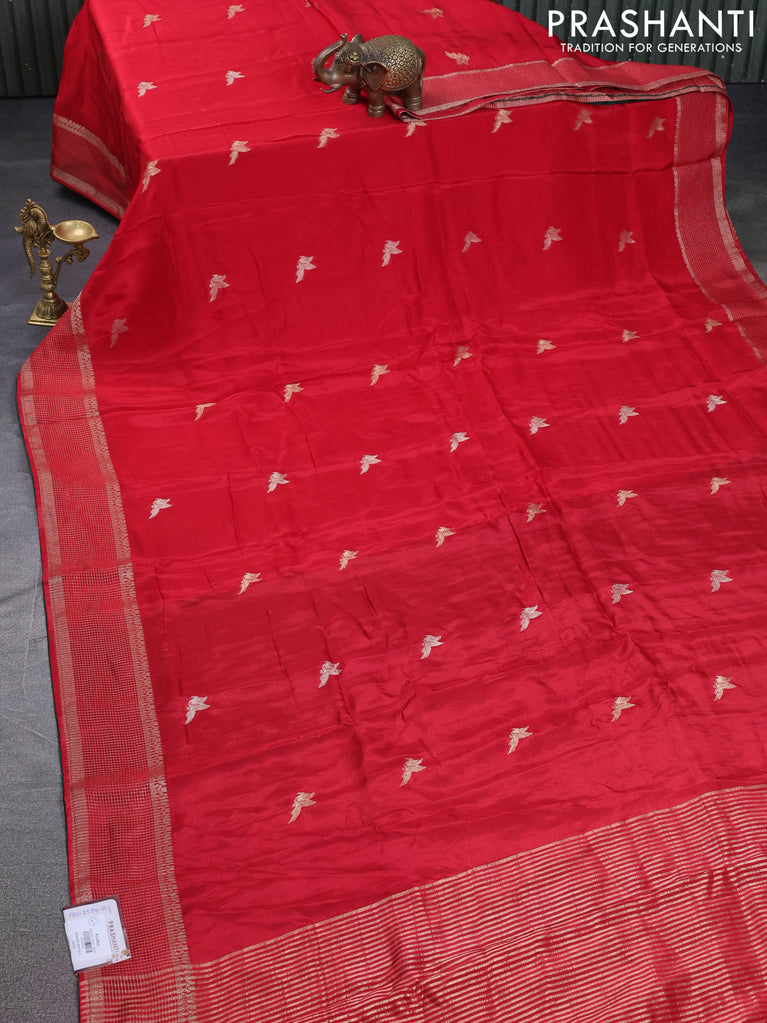 Banarasi silk saree red and green with zari woven brids buttas and zari woven border