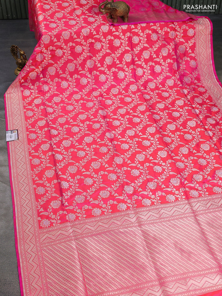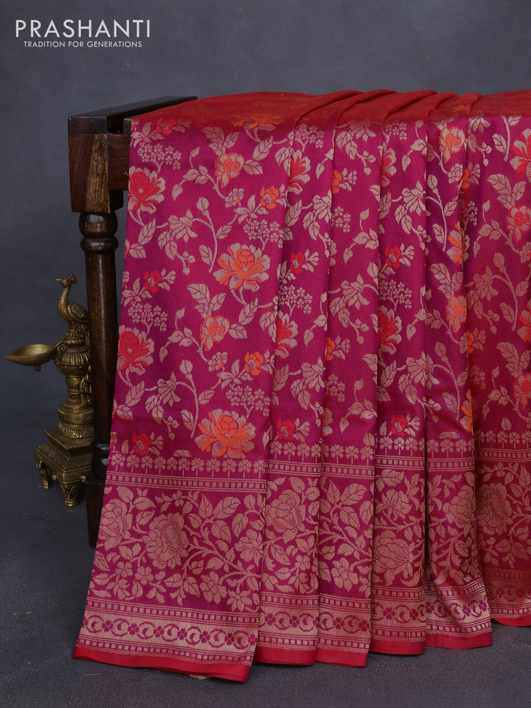Banarasi uppada silk saree magenta pink with allover thread & zari woven floral weaves and floral zari woven border