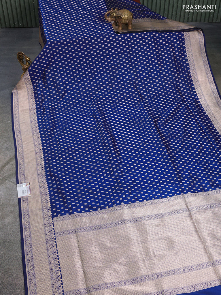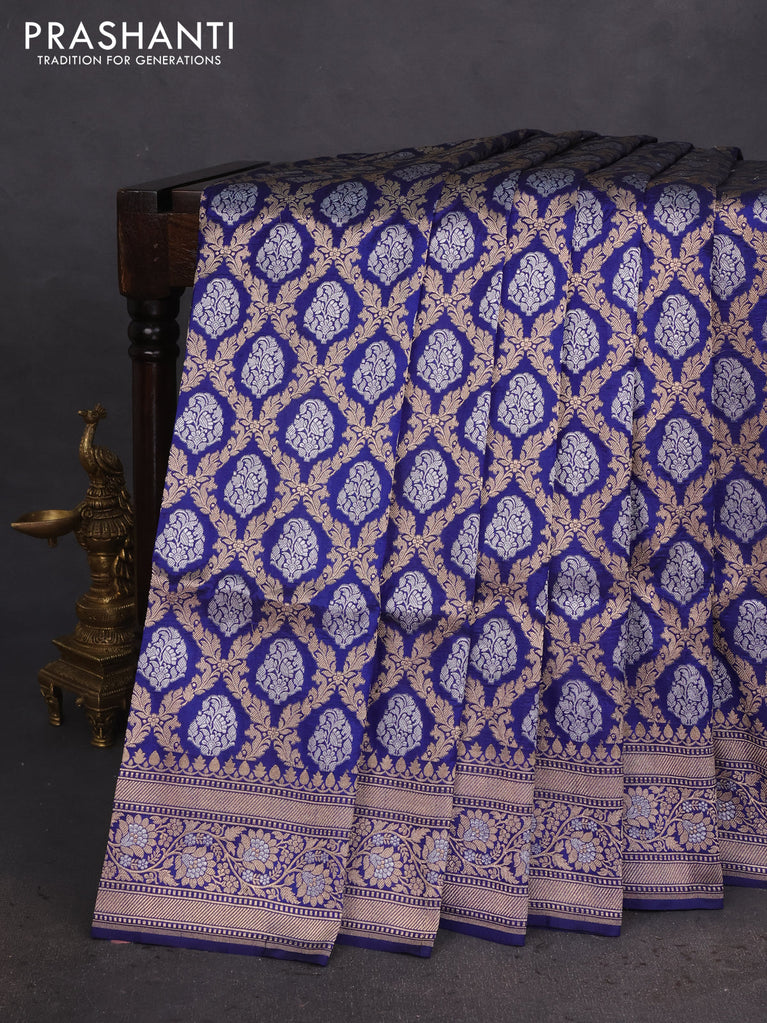 Banarasi uppada silk saree blue with allover silver & gold zari woven brocade weaves and zari woven border