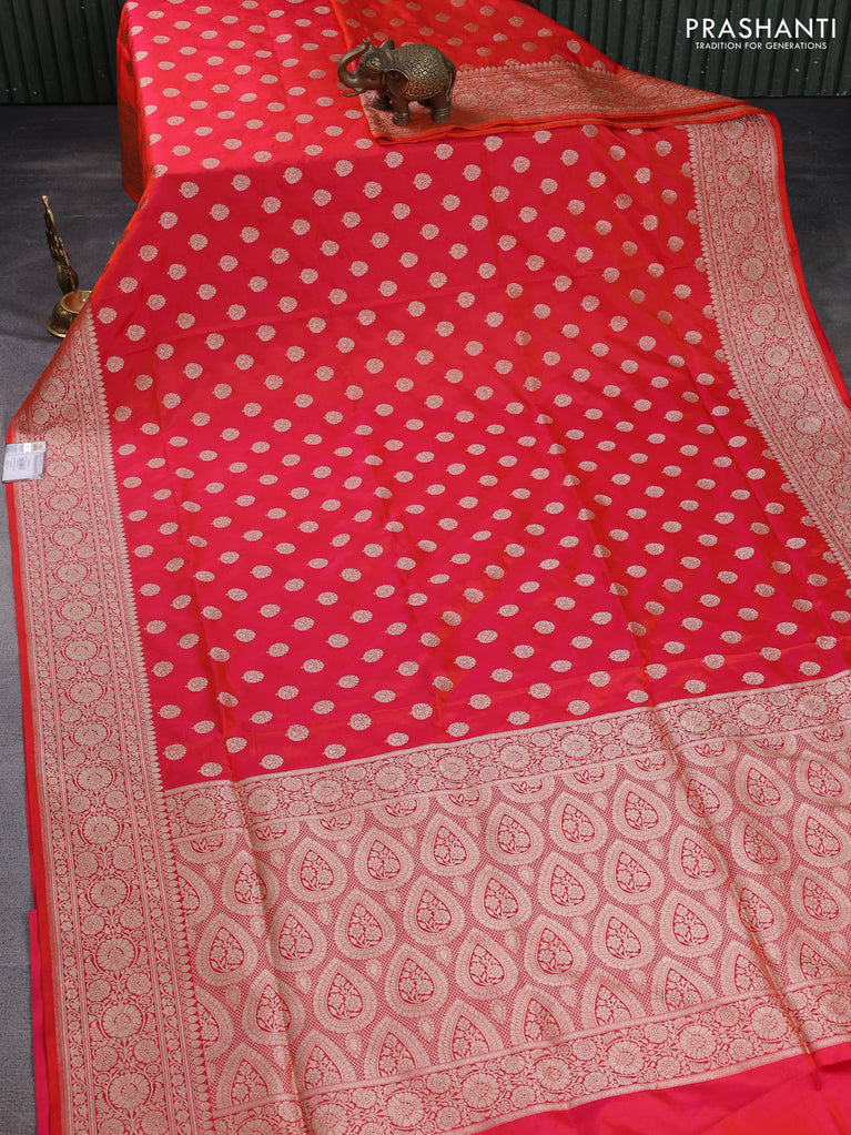 Banarasi uppada silk saree dual shade of pinkish orange with allover zari woven butta weaves and zari woven border