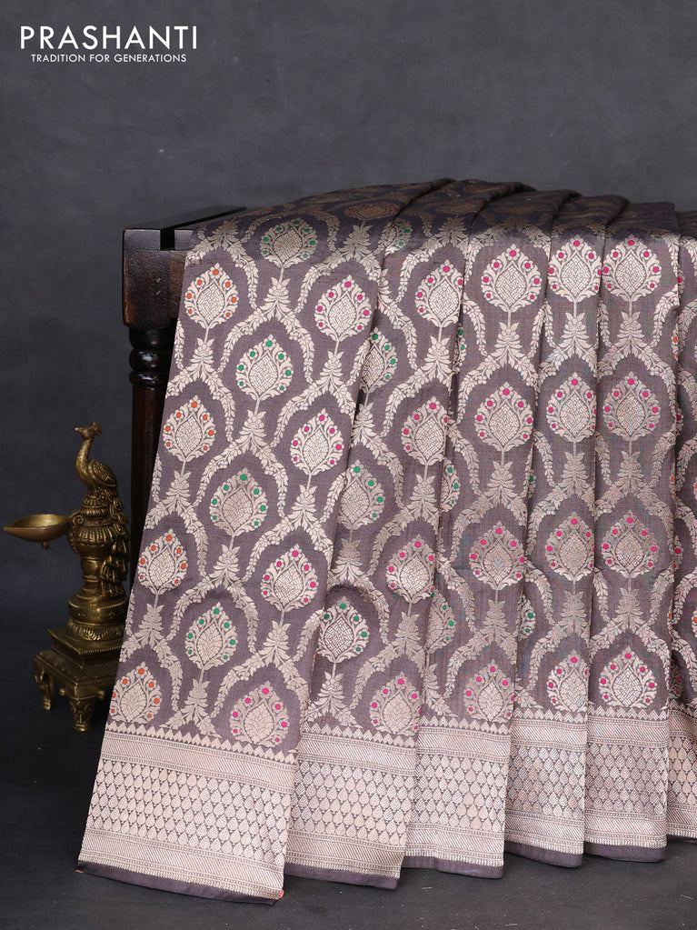 Banarasi uppada silk saree grey shade with allover zari woven brocade weaves and zari woven border