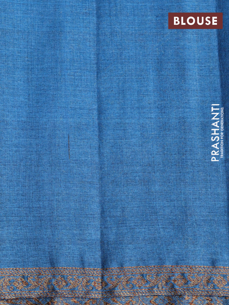 Banarasi tussar silk saree peacock blue and rust shade with thread & zari buttas and banarasi style border