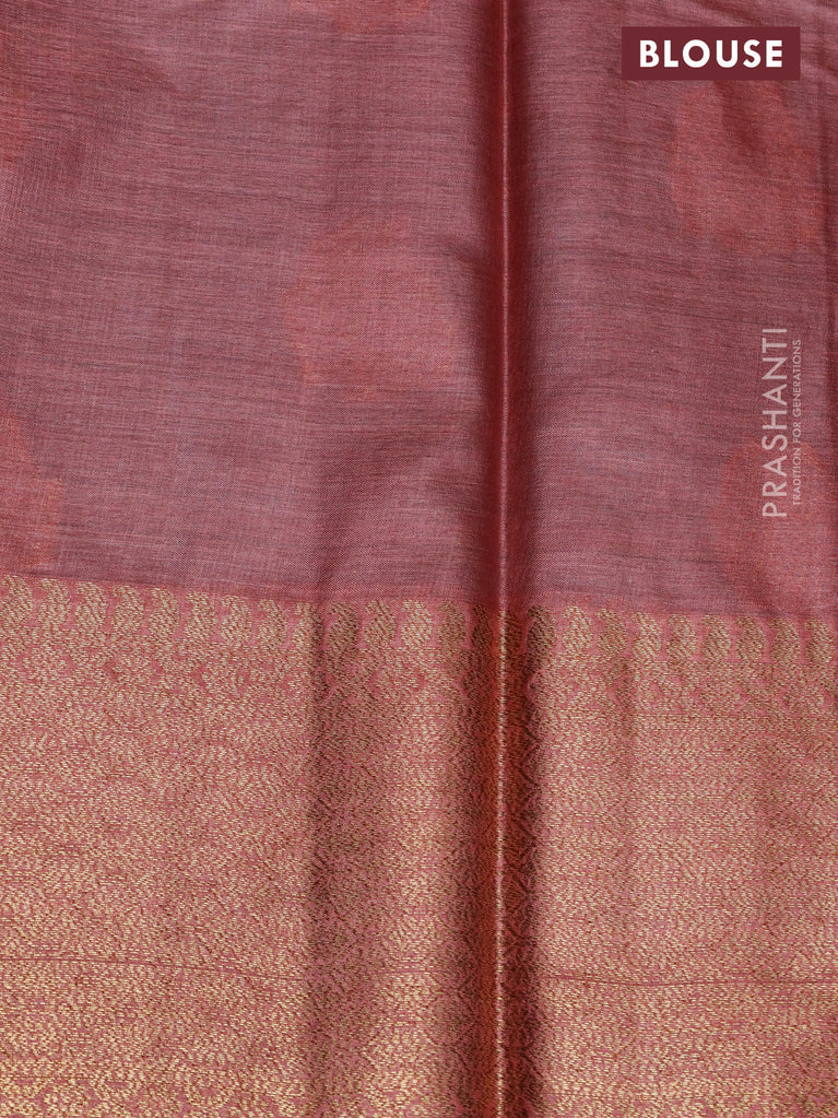 Banarasi tussar silk saree rosey brown with woven buttas & digital prints in borderless style