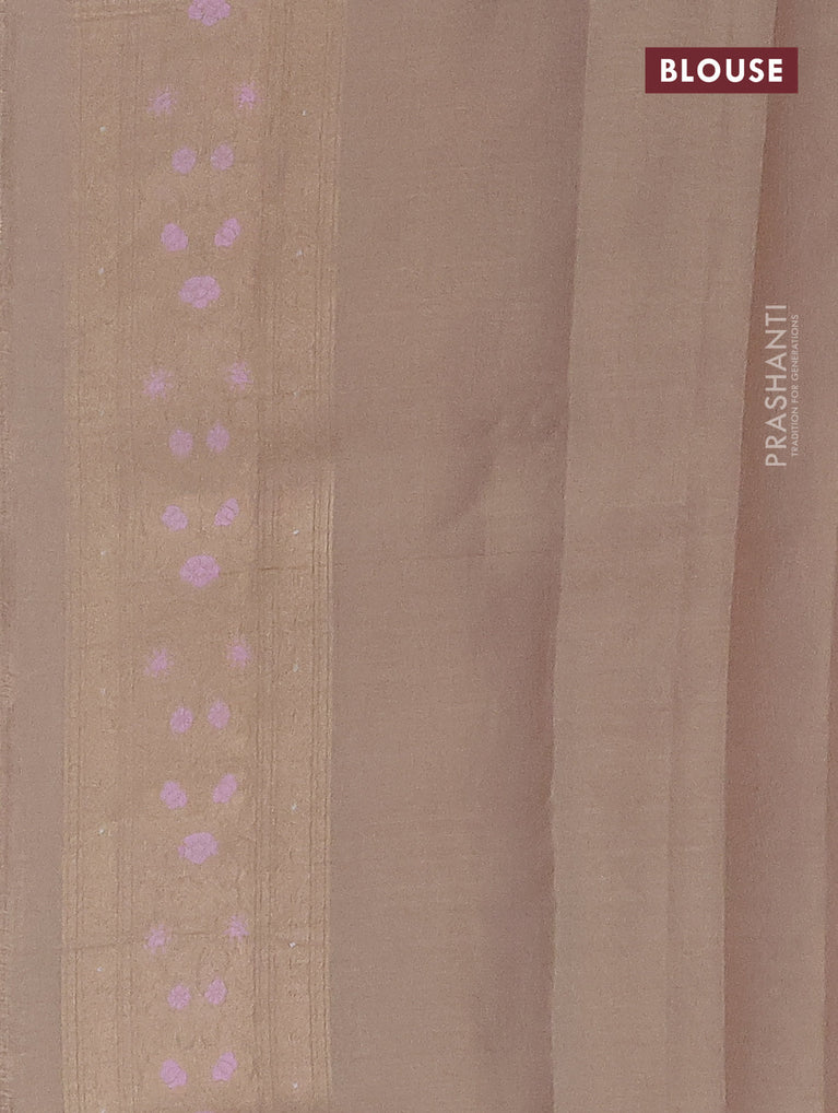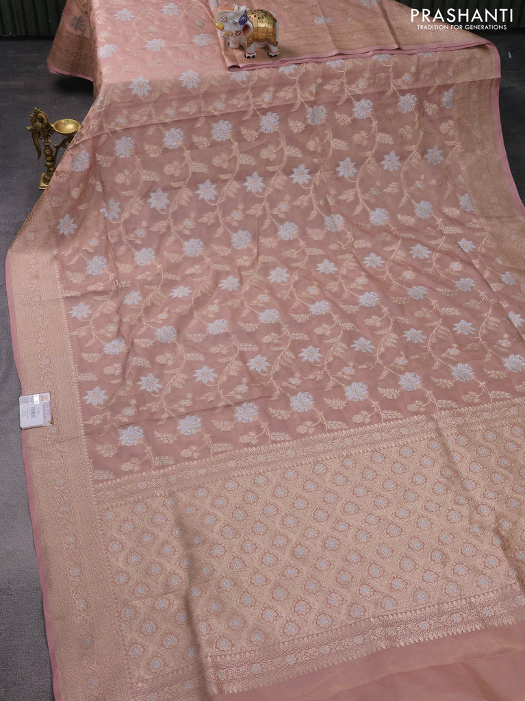 Banarasi tissue silk saree sandal and peach pink with allover thread & zari woven floral weaves and zari woven border