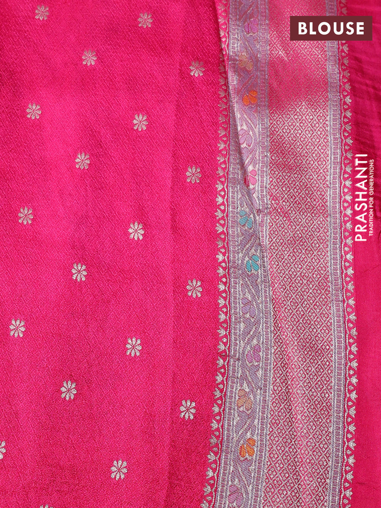 Banarasi tissue silk saree pink with allover thread woven floral weaves and silver zari woven border