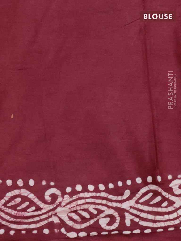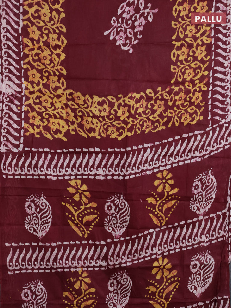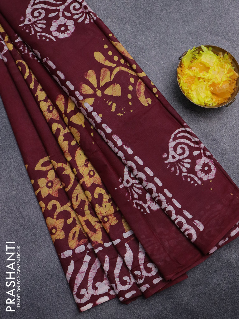 Batik cotton saree deep marron and mustard yellow with batik prints and long printed border