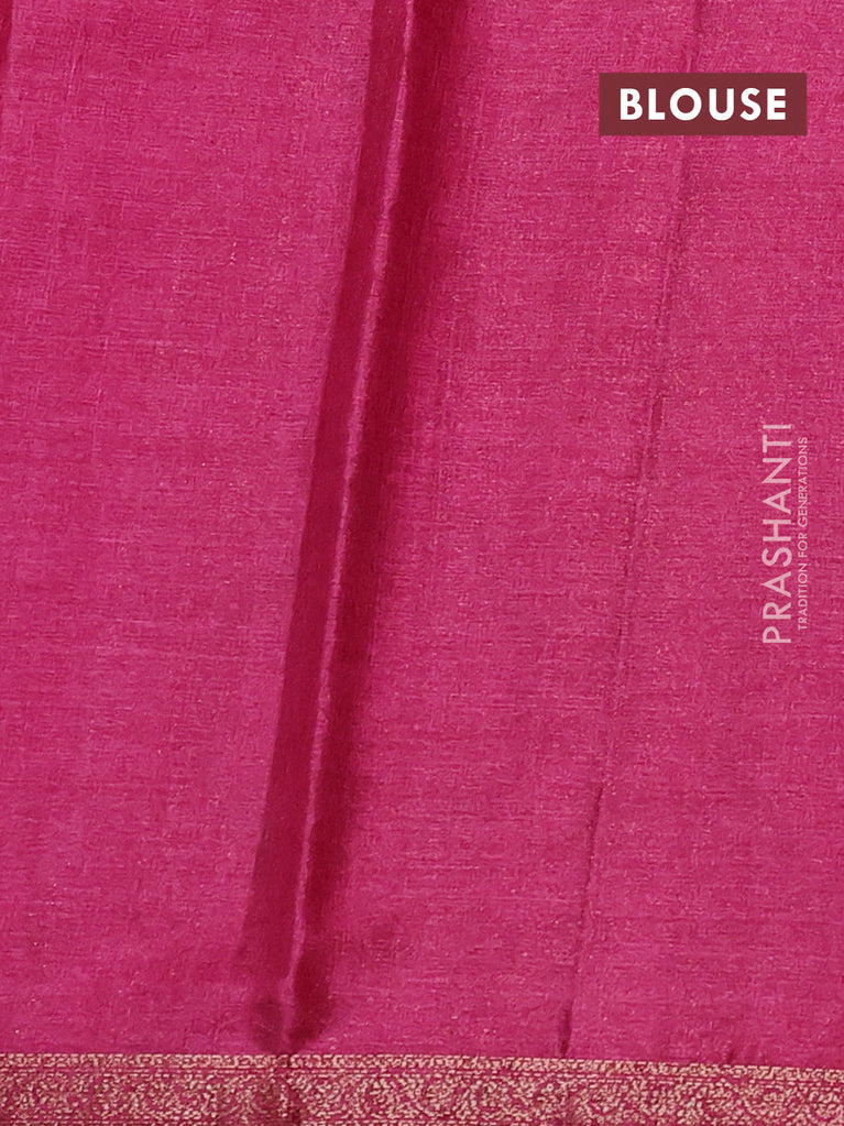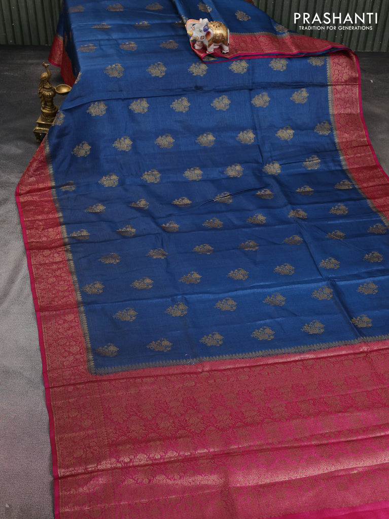 Banarasi tussar silk saree peacock blue and magenta pink with thread & zari woven buttas and woven border