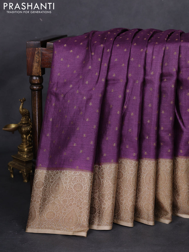 Banarasi tussar silk saree purple and beige with allover thread & zari woven buttas and woven border