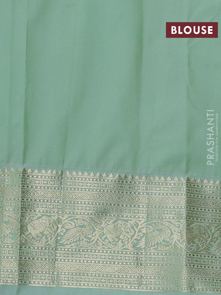 Bangalori silk saree pastel green and violet with zari woven buttas and long zari woven border