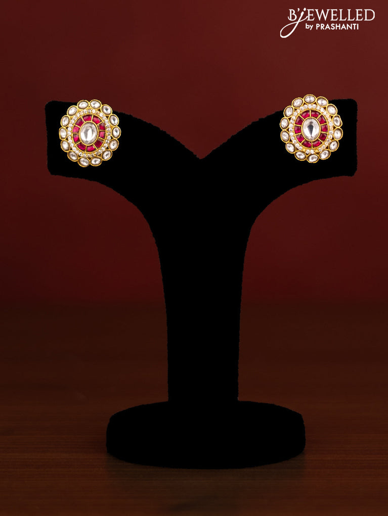 Beaded maroon choker with kundan & cz stones and pearl hangings in victorian finish