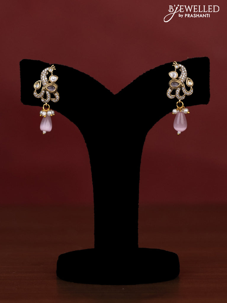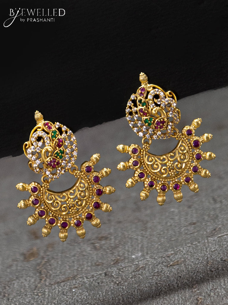Beaded maroon necklace with kemp & cz stones and peacock pendant