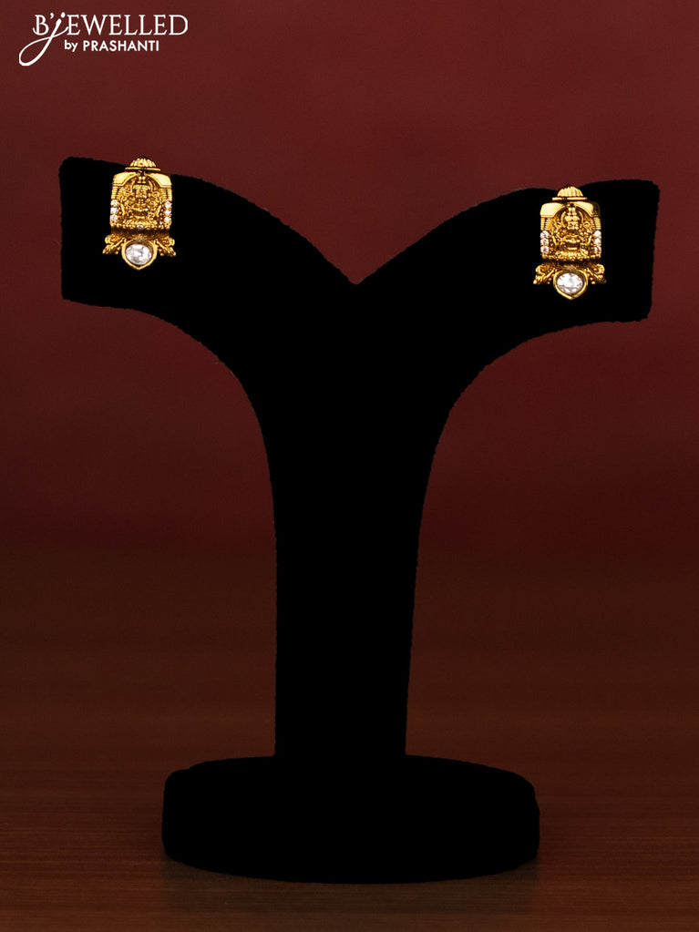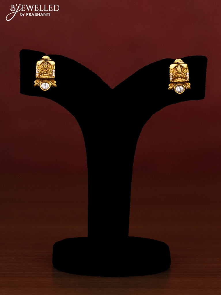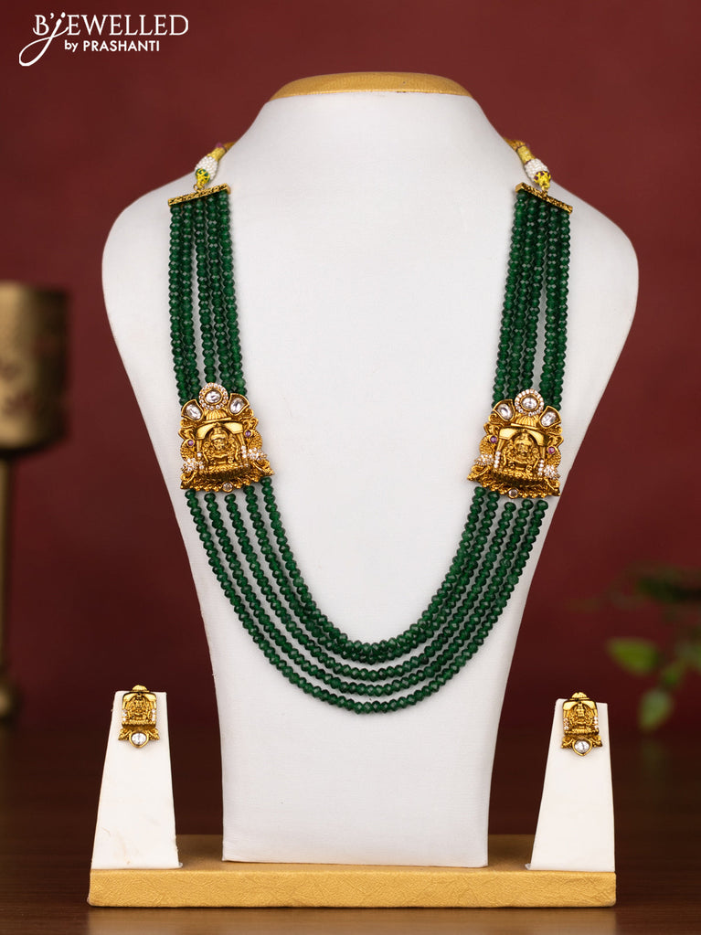 Beaded multilayer green necklace lakshmi design with cz stones