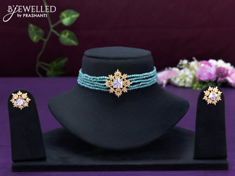 Beaded mint green choker with cz stone pendant