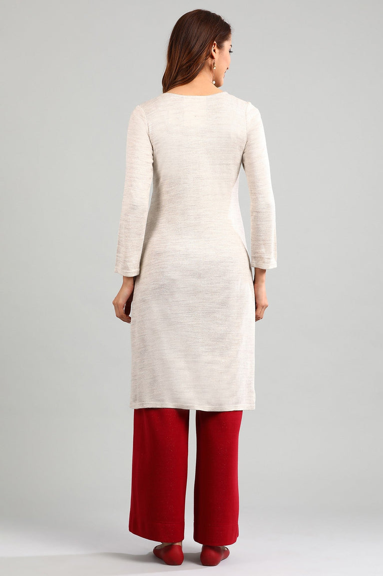 Understated yet festive, this beige A-line kurta and trouser set features sequin highlights that catch light beautifully. The A-line cut flows elegantly, while the neutral base allows for bold accessorizing. A great option for daytime celebrations or traditional meets.