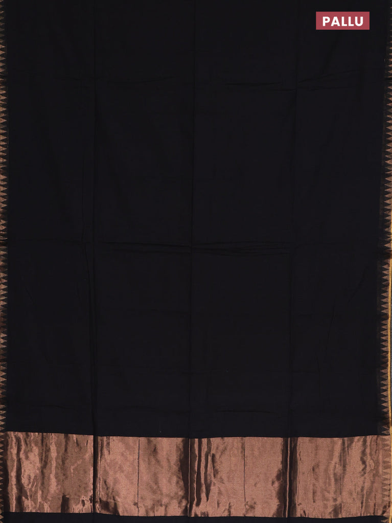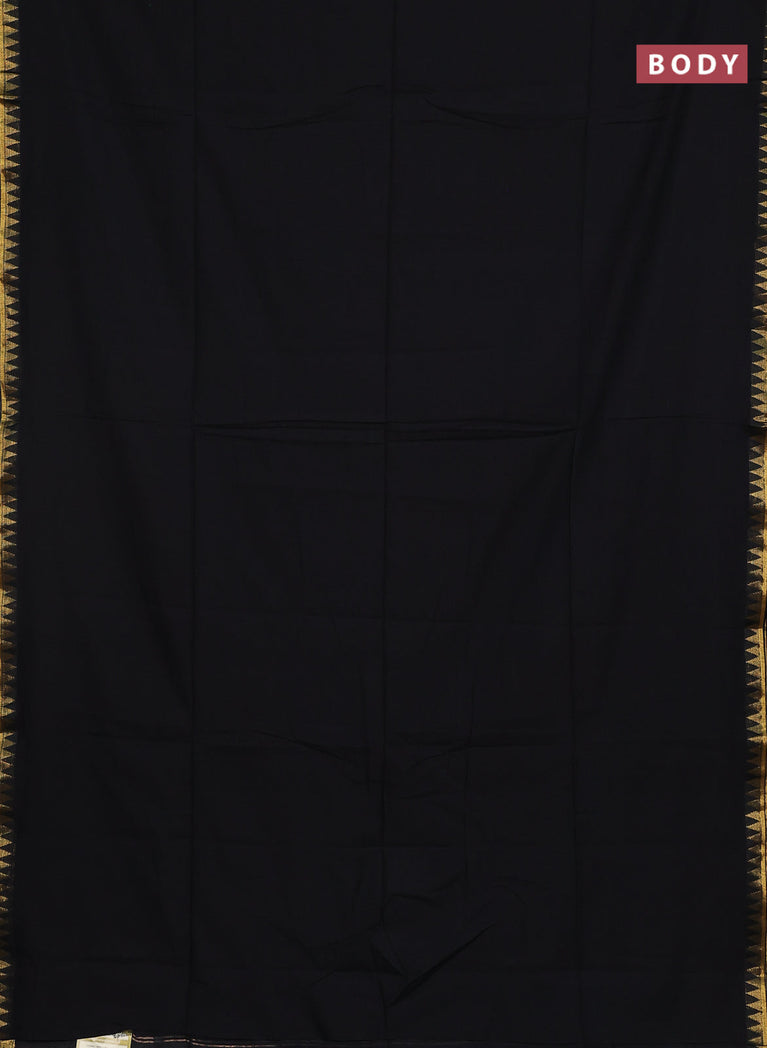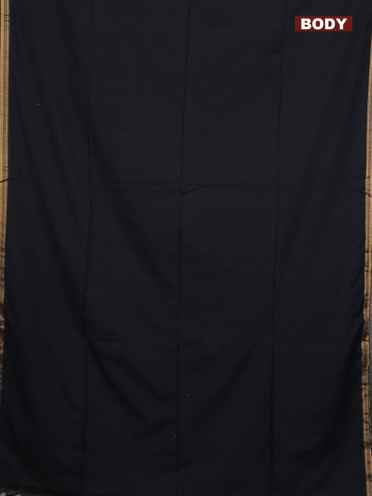 Bengal soft cotton saree black and blue with plain body and zari woven border