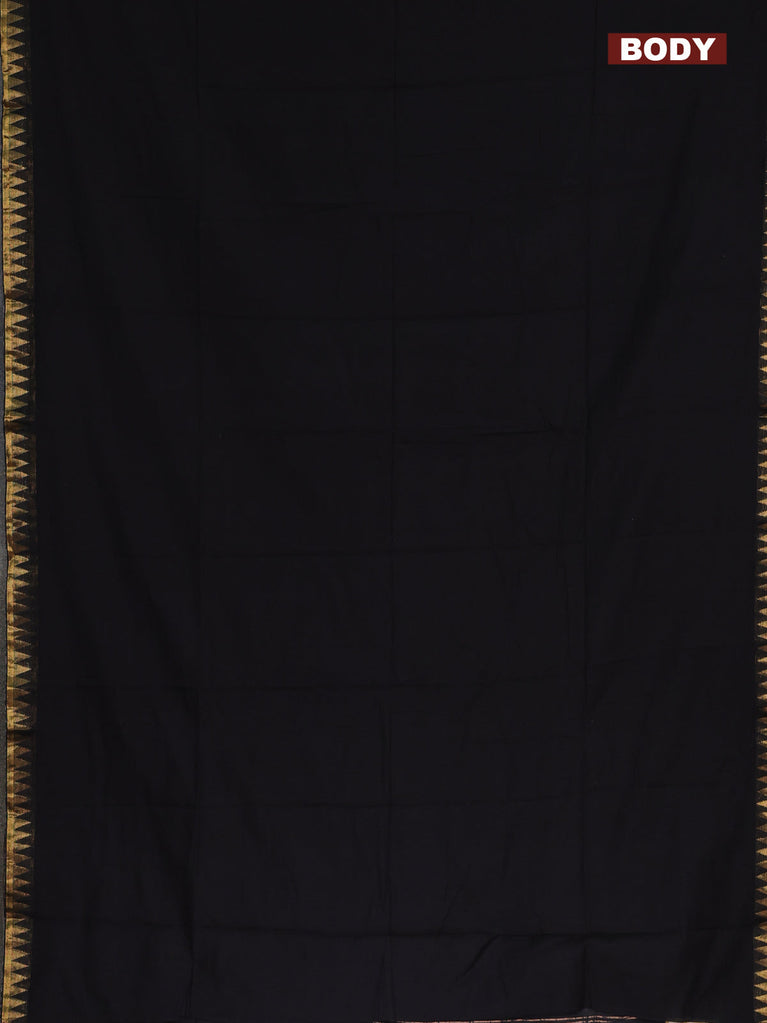 Bengal soft cotton saree black and green with plain body and zari woven border
