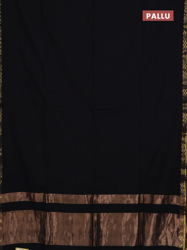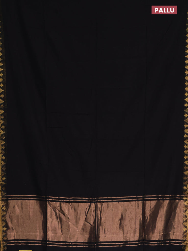 Bengal soft cotton saree black and bluish grey with plain body and zari woven border