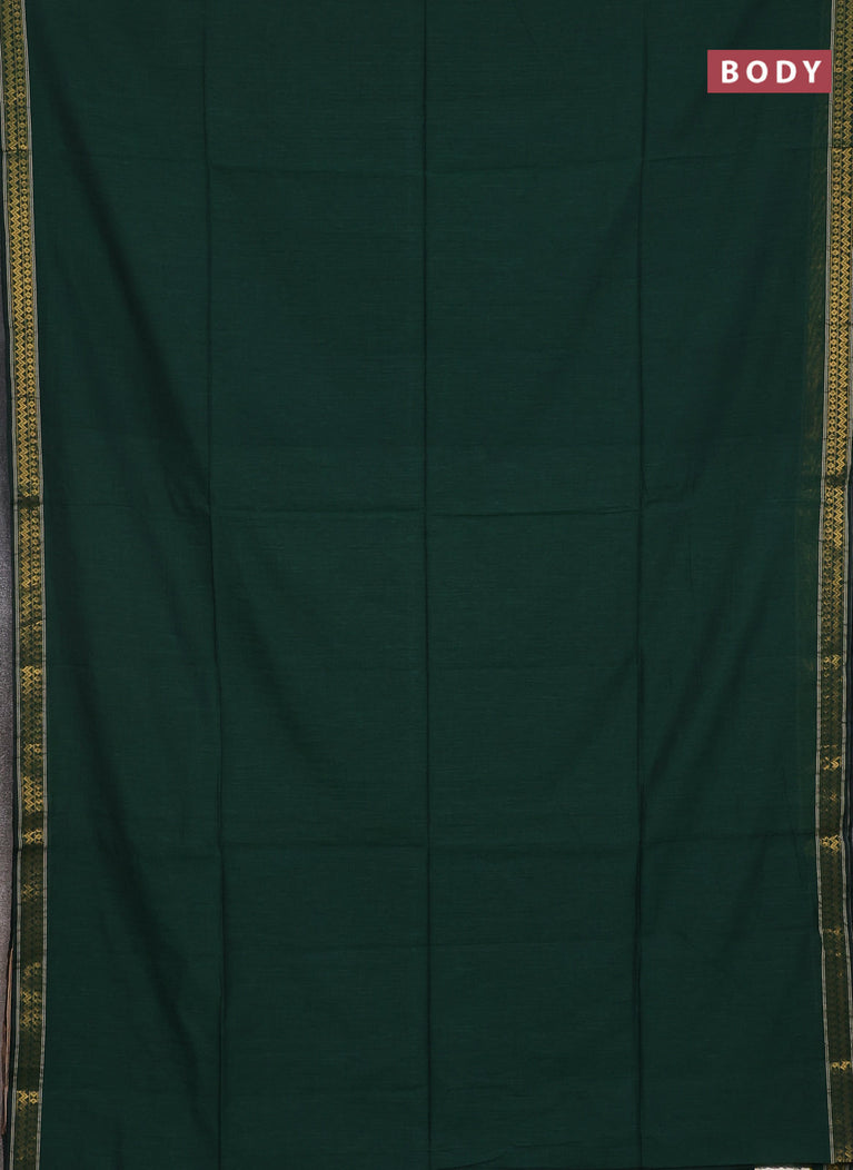 Bengal soft cotton saree green and red with plain body and zari woven border