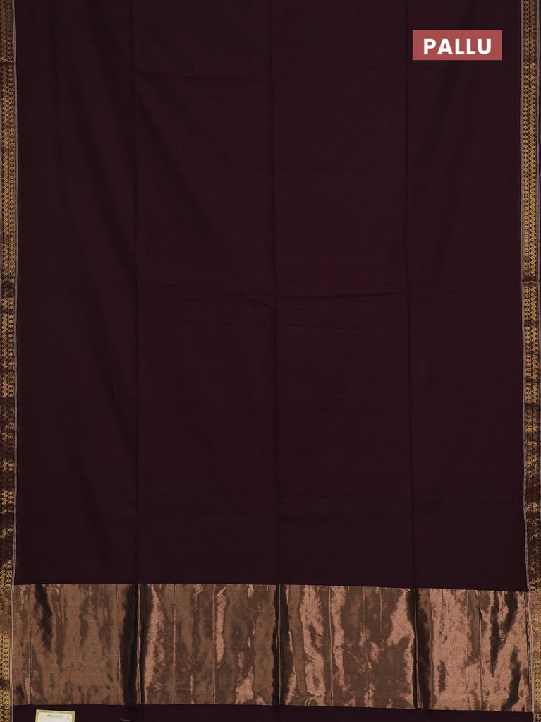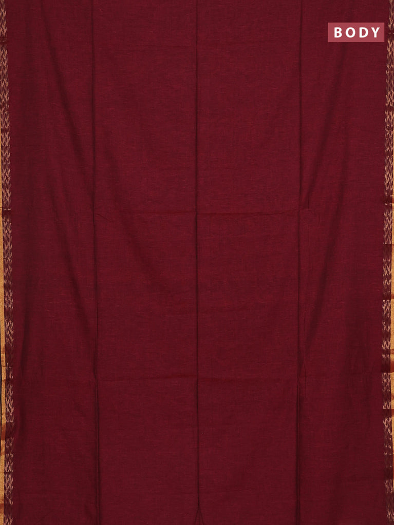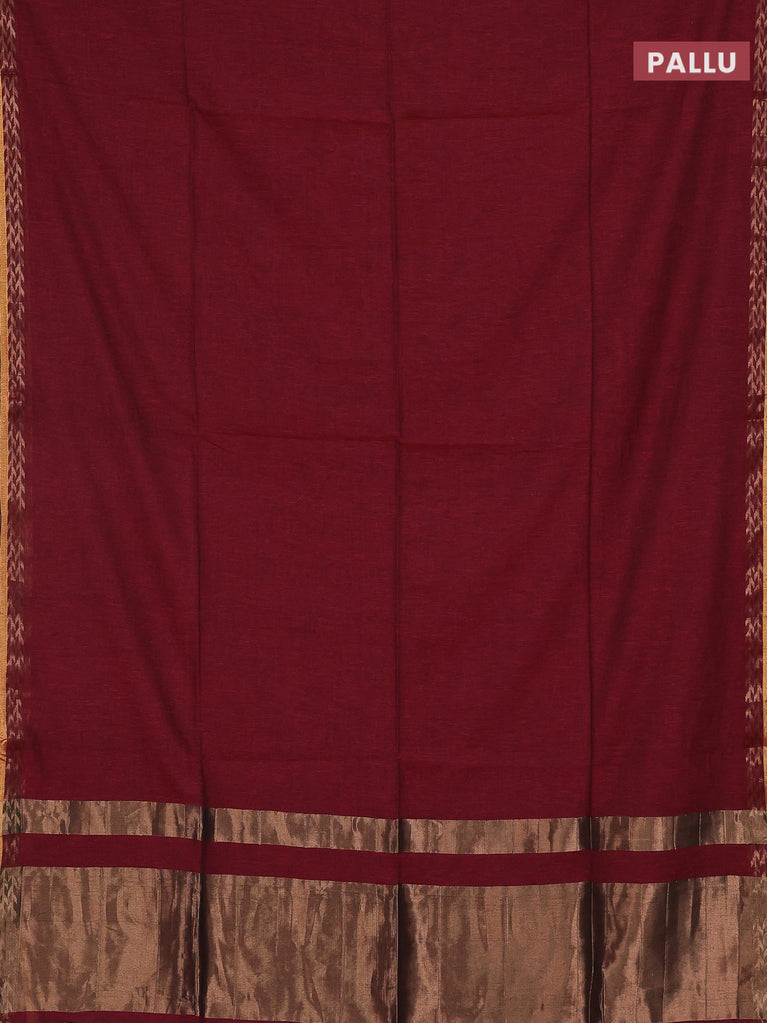 Bengal soft cotton saree deep maroon and blue with plain body and zari woven border