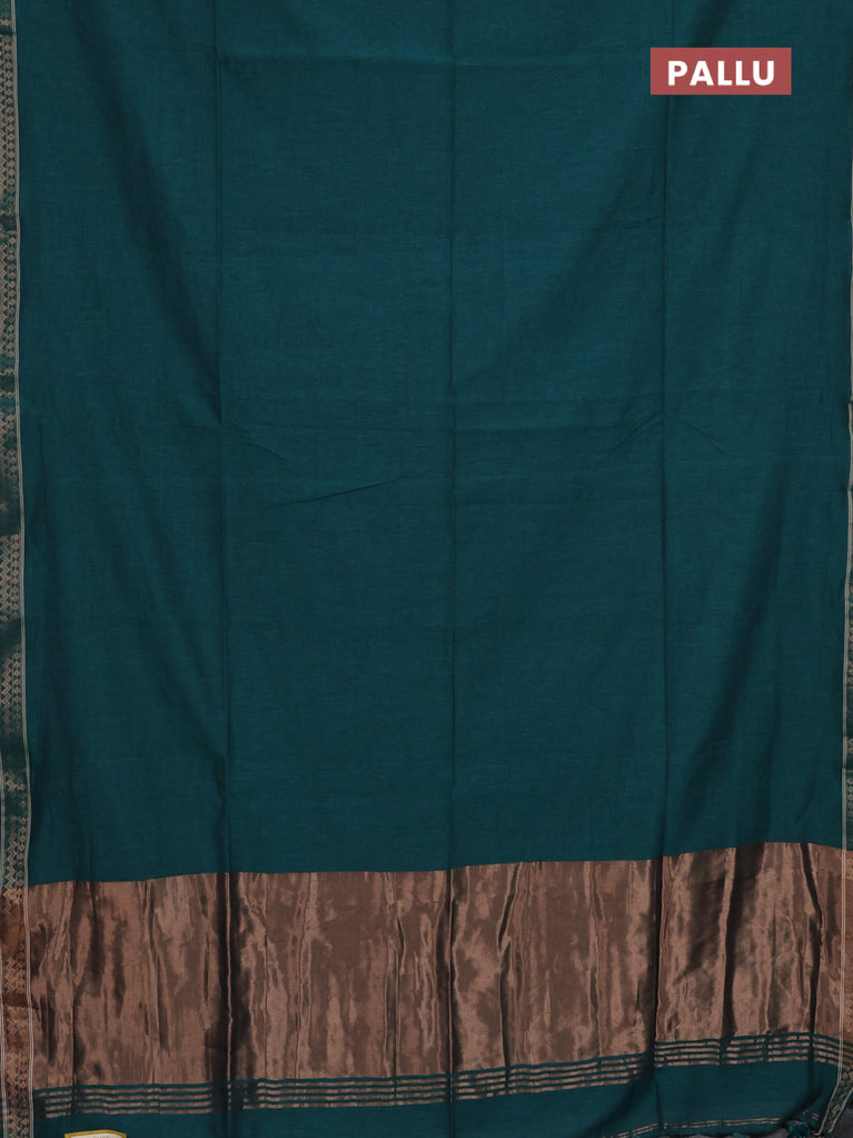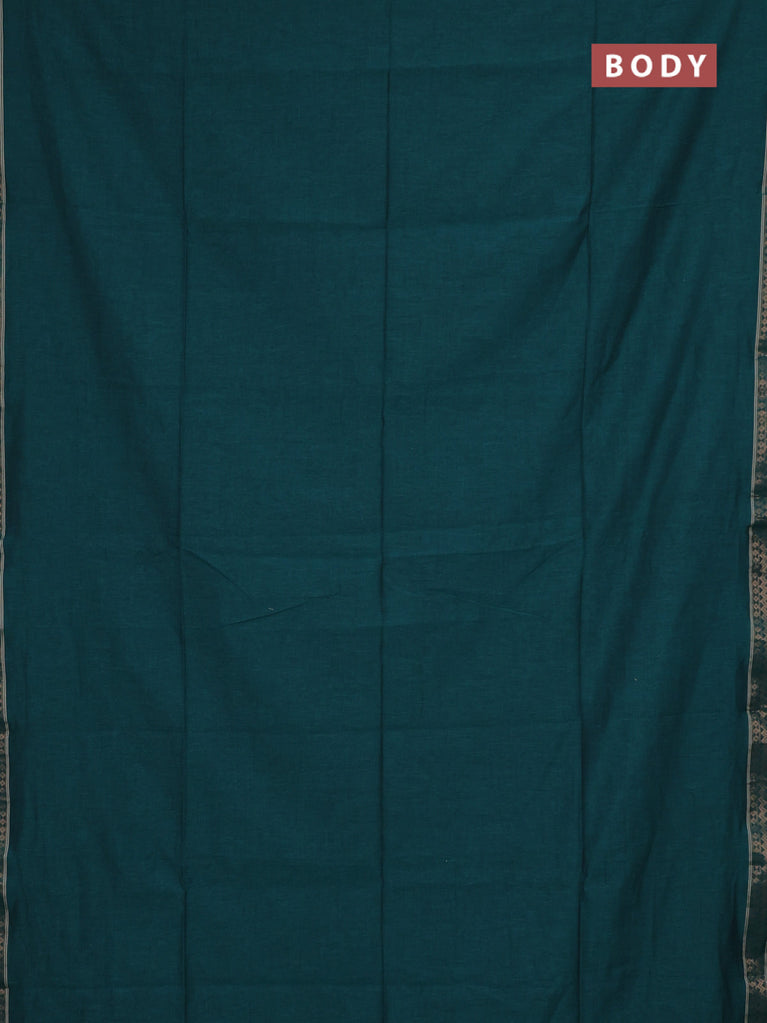 Bengal soft cotton saree green and blue with plain body and zari woven border
