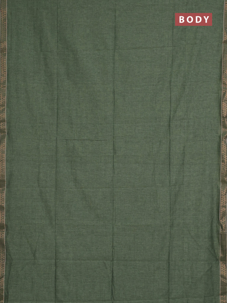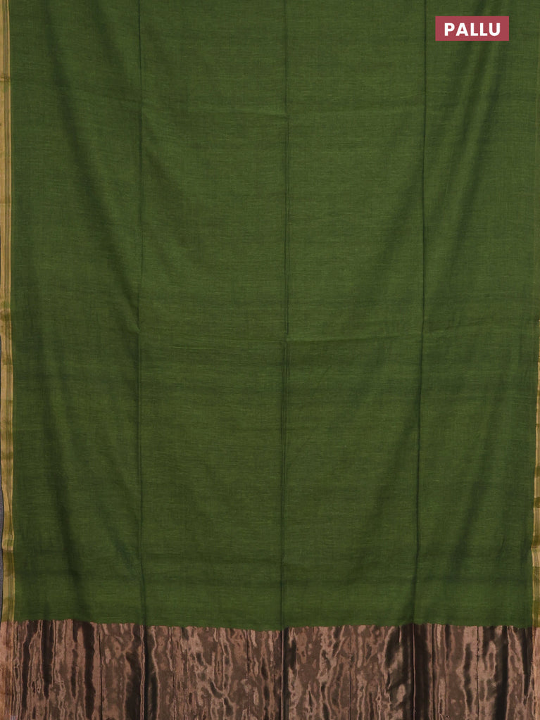 Bengal soft cotton saree green shade and brown with plain body and zari woven border
