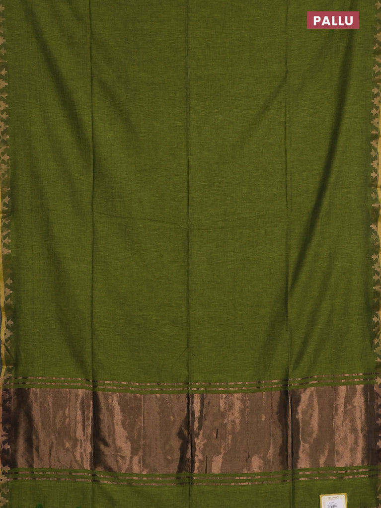 Bengal soft cotton saree green and yellow with plain body and zari woven border