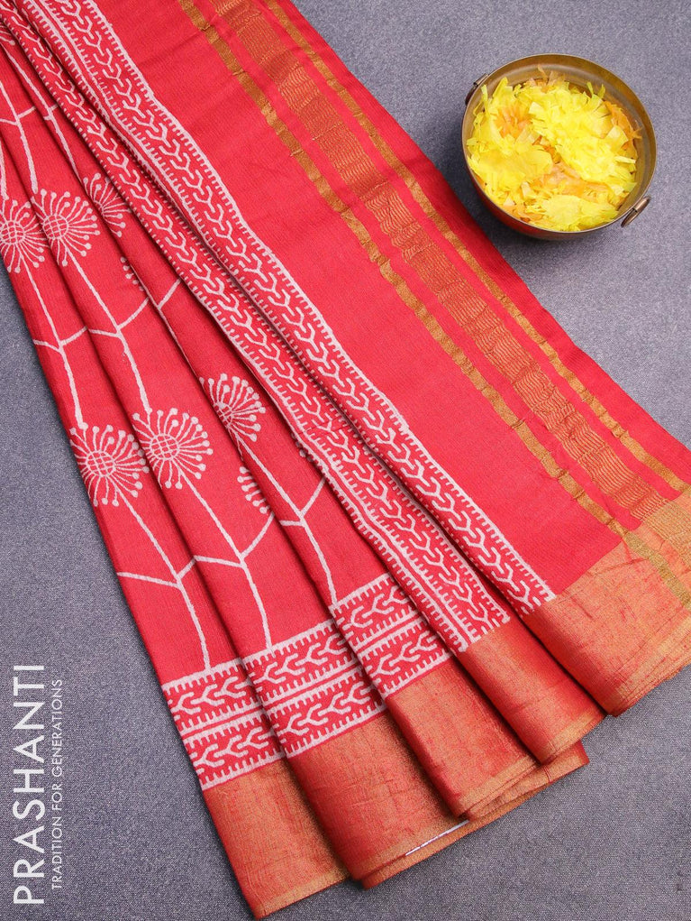 Bhagalpuri saree rust shade with butta prints and zari woven border