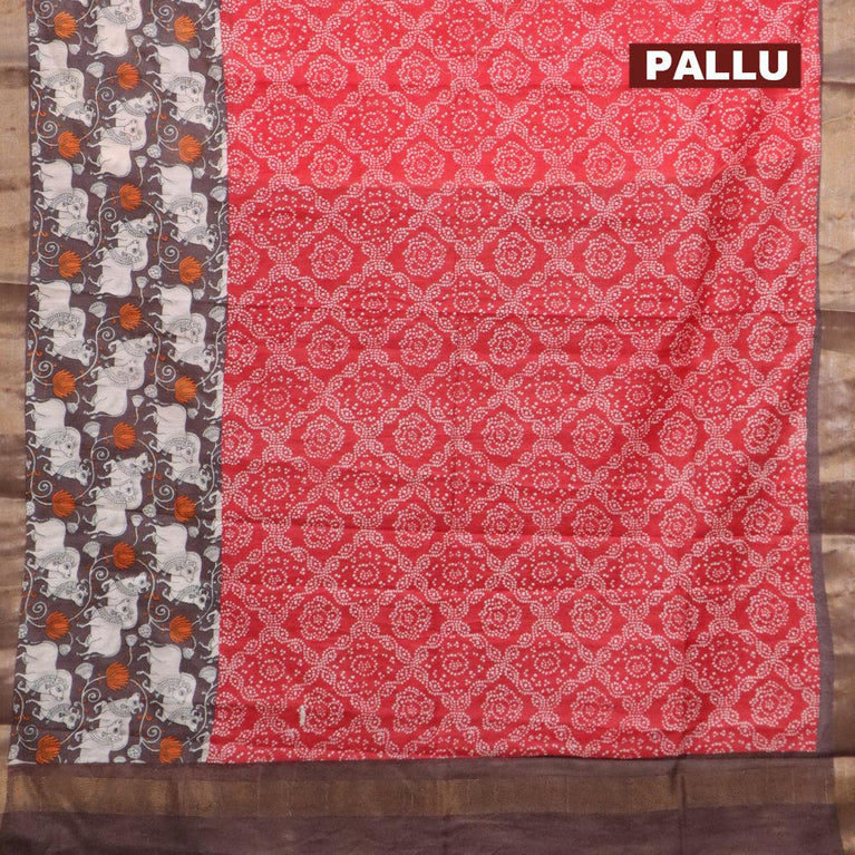 Bhagalpuri saree red and brown with allover bandhani prints and long pichwai printed zari woven border