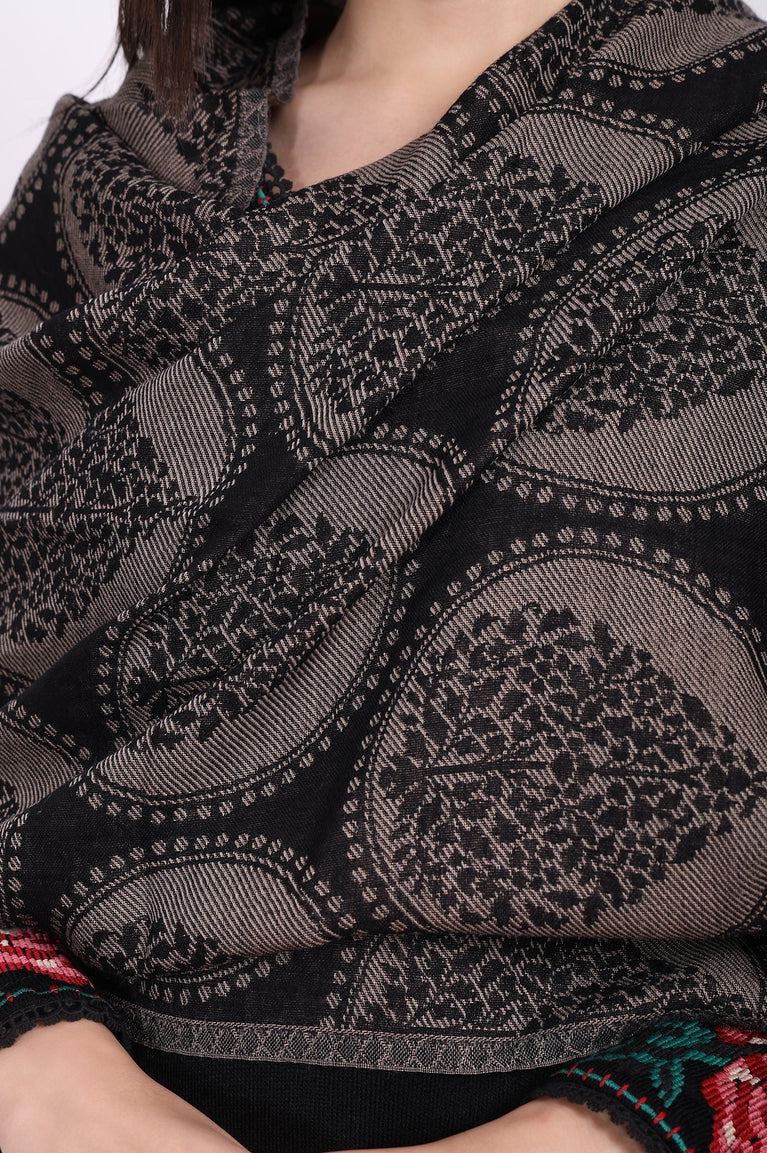 Black Ethnic Motifs Paisley Wool Shawl