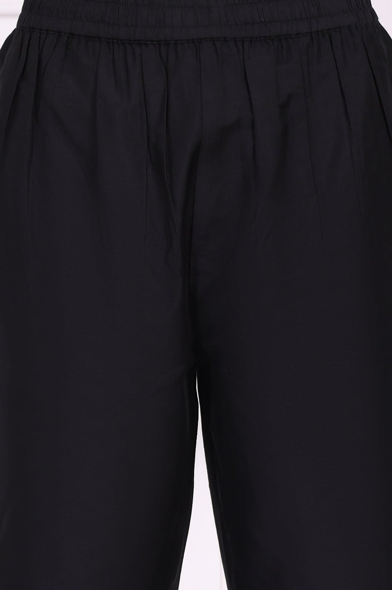 Black Embroidered Straight Kurta and Pant Set
