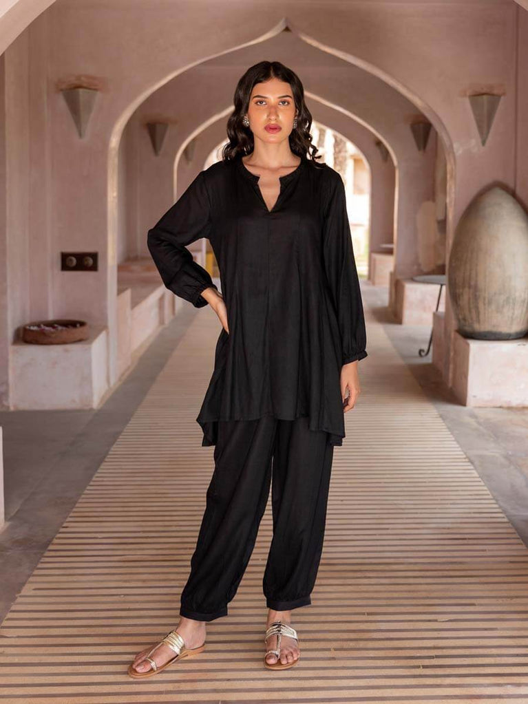 Black Embroidered Asymmetrical Kurta Set
